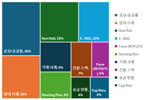 E. NOC, 거래사례, Stacking Plan → 29%, 각 10% 가량 문의 후 순위로는 “운영 효율성·비교사례·임차인 분포” 같은 투자자·실수요자 분석용 데이터에 대한 니즈가 높은 것으로 보입니다.