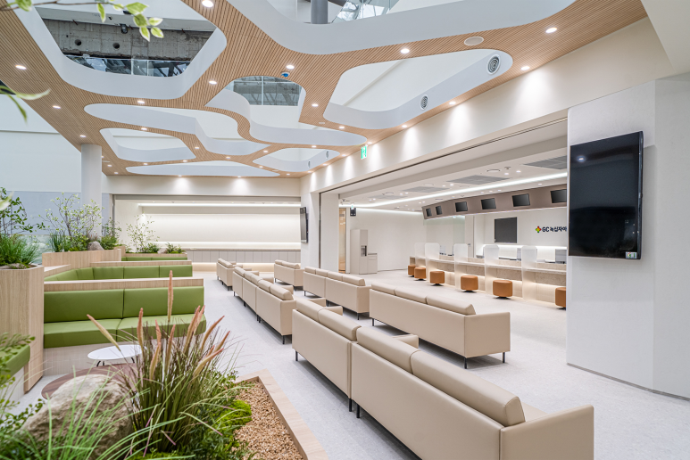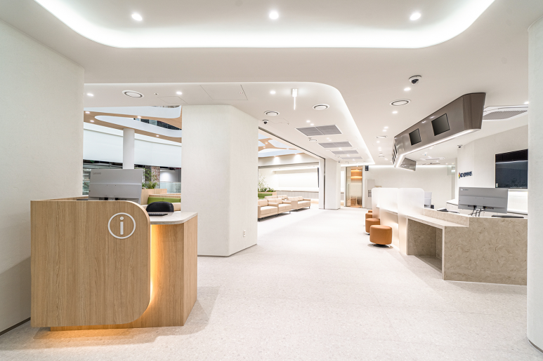 GC녹십자아이메드 서울숲의원은 통합의료(Integrative Medicine)라는 철학을 공간적으로 구현한 헬스케어 혁신의 거점입니다. 공용부의 건축적 웅장함을 적극 활용하여 개방감과 규모감을 극대화해, 방문객은 첫 발을 내딛는 순간부터 기관에 대한 신뢰와 혁신을 직관적으로 경험하게 됩니다. |